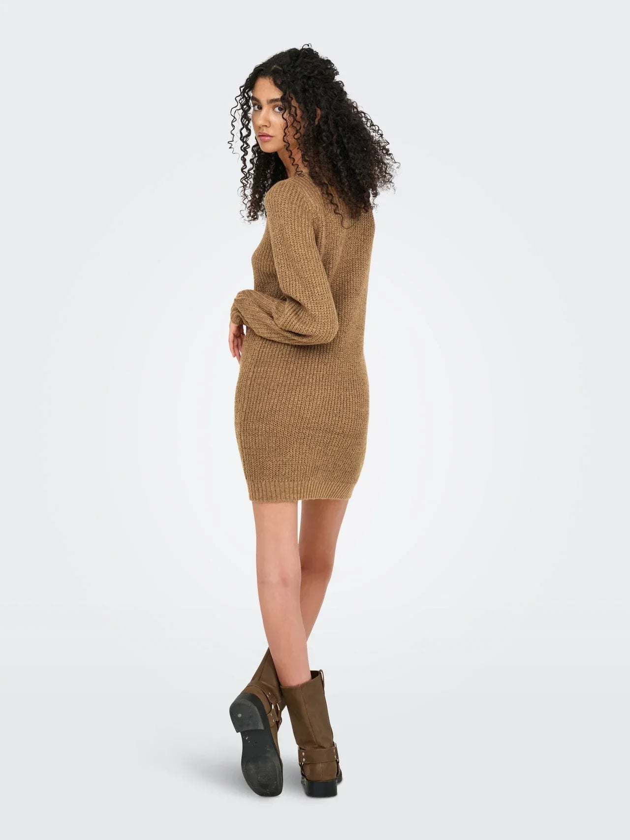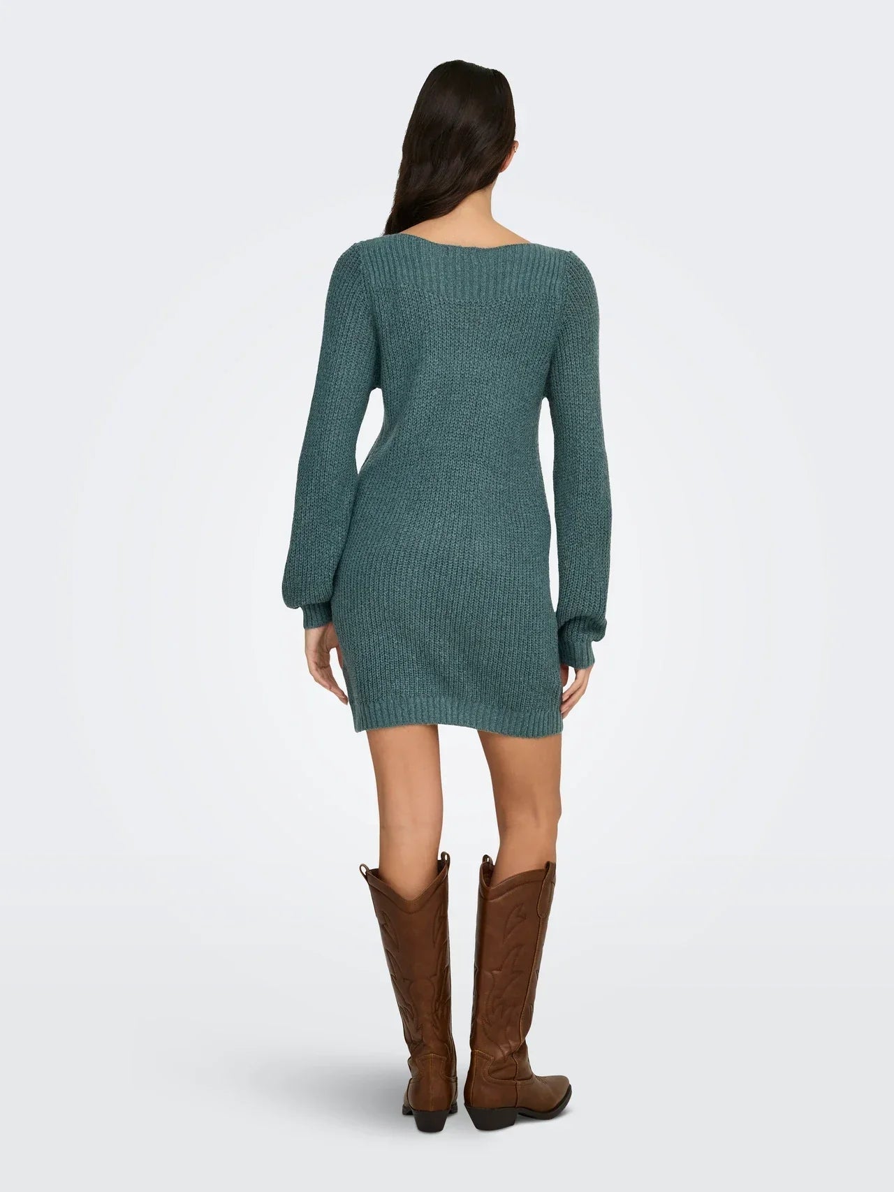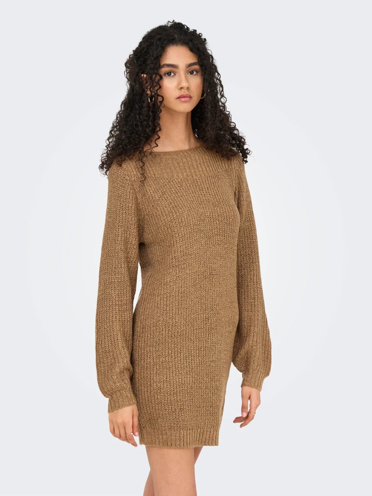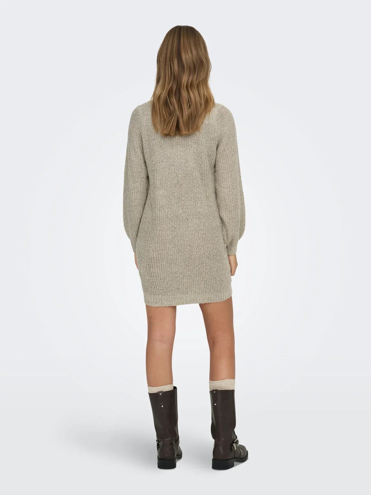This elegant knitted dress with balloon sleeves and a U-boot neckline offers a perfect balance of style and comfort. The timeless design is suitable for a variety of occasions and exudes sophistication. The playful balloon sleeves add a charming touch, allowing the dress to be worn both chic and casual.