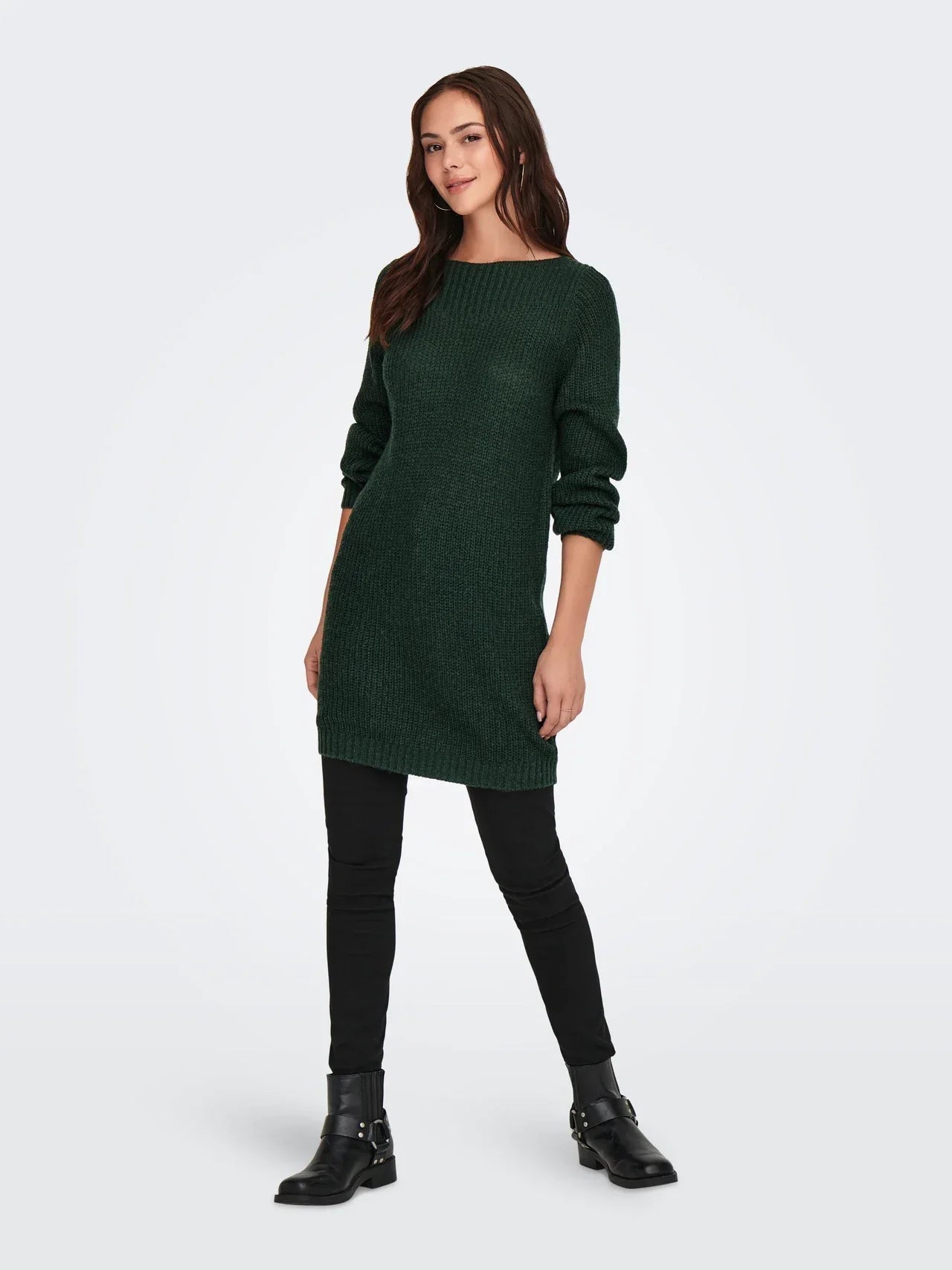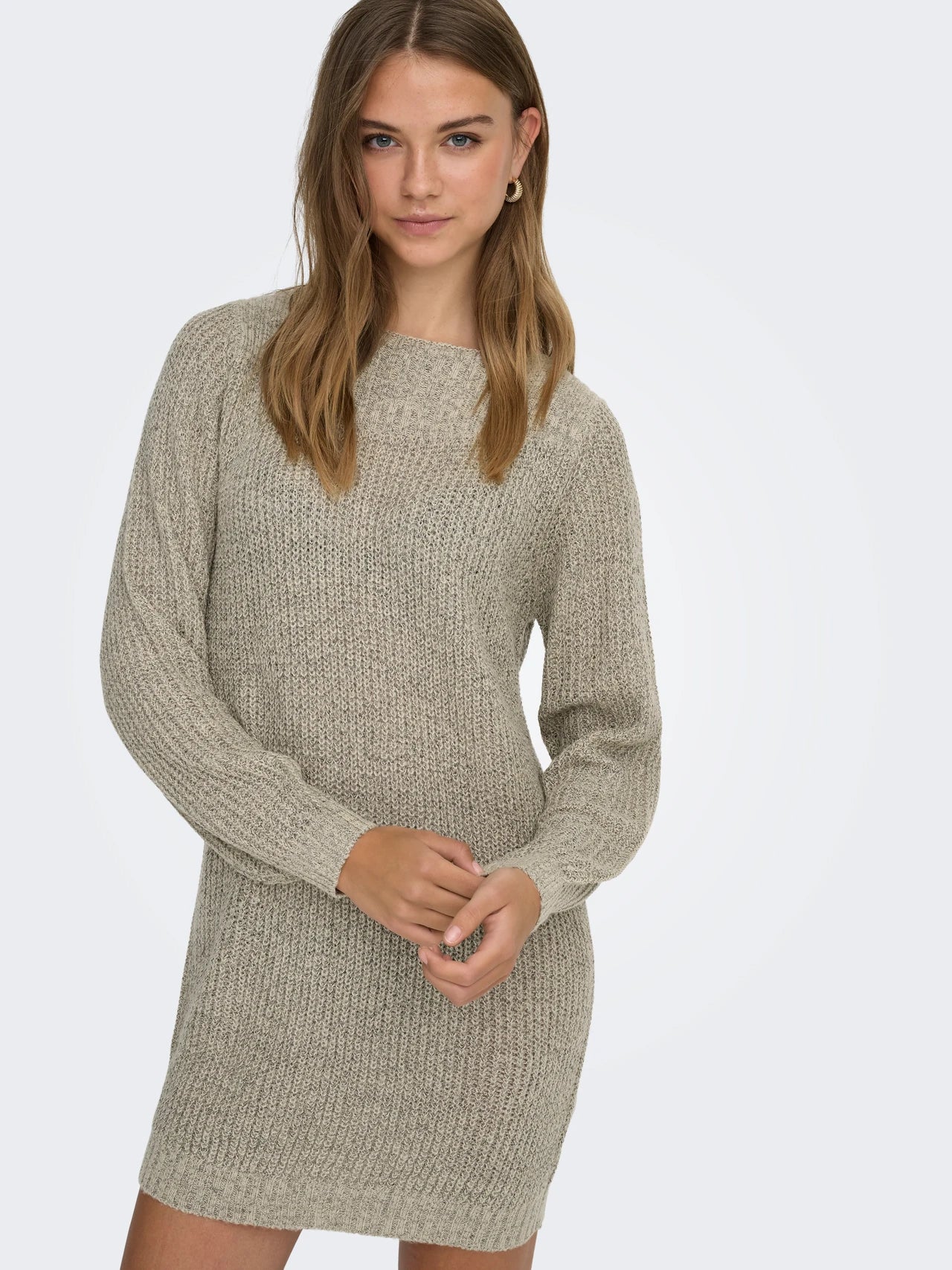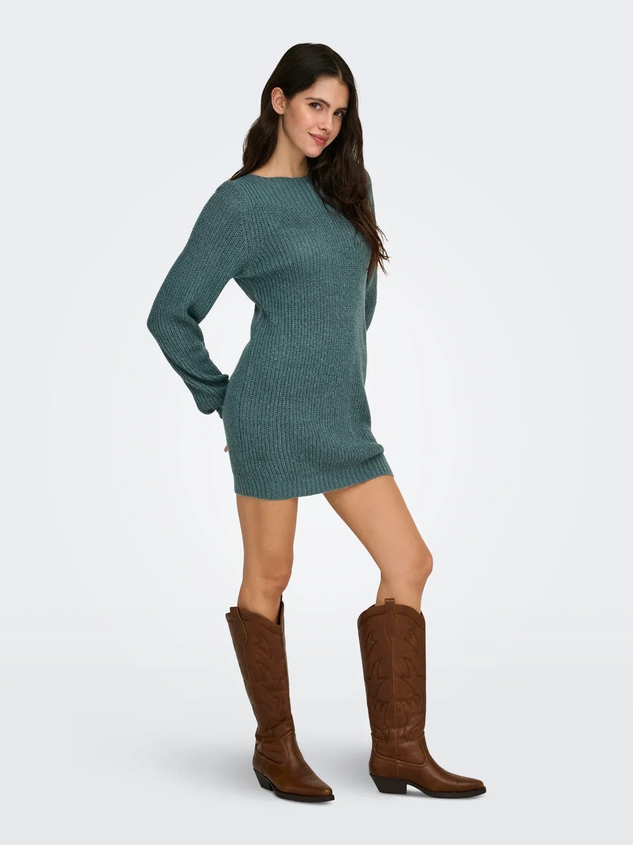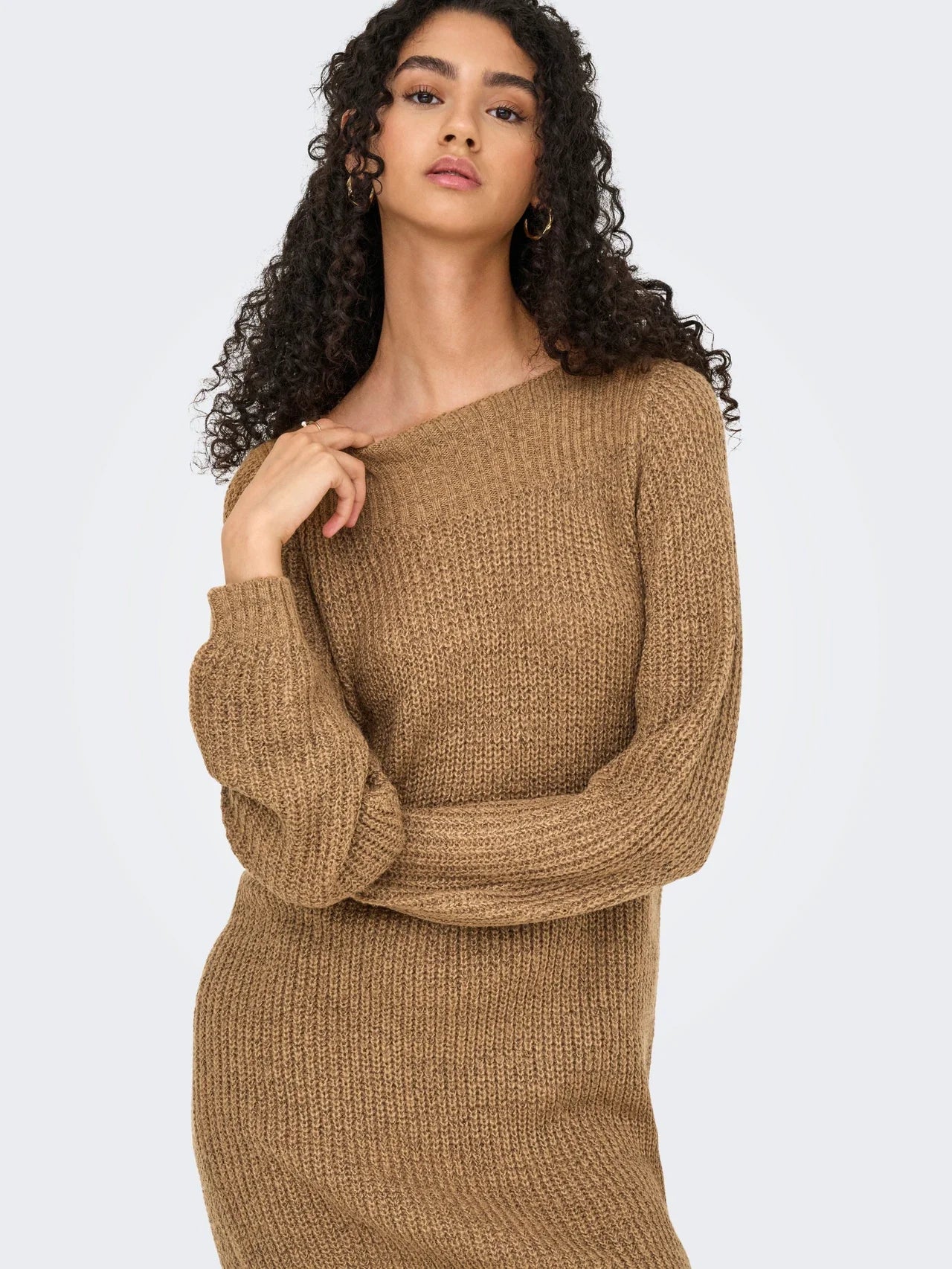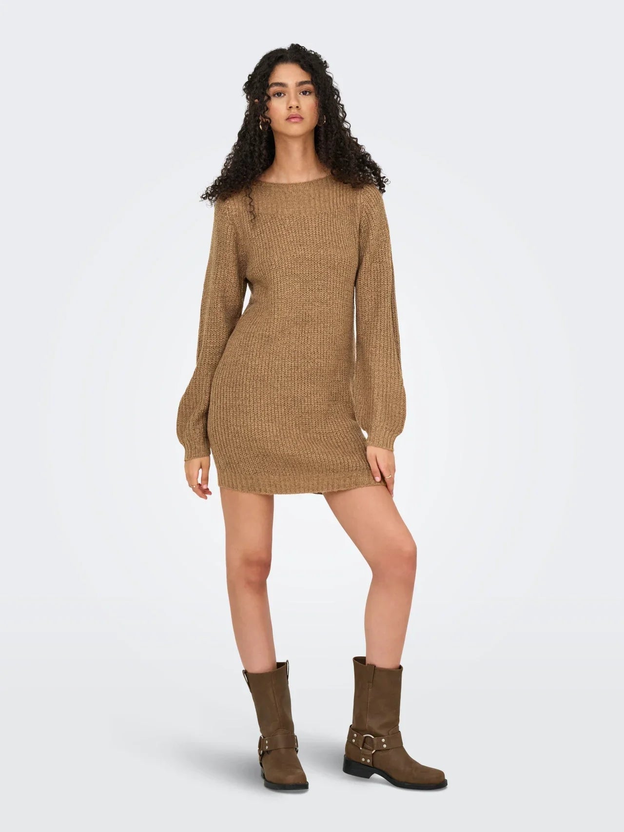 This elegant knitted dress with balloon sleeves and a U-boot neckline offers a perfect balance of style and comfort. The timeless design is suitable for a variety of occasions and exudes sophistication. The playful balloon sleeves add a charming touch, allowing the dress to be worn both chic and casual.