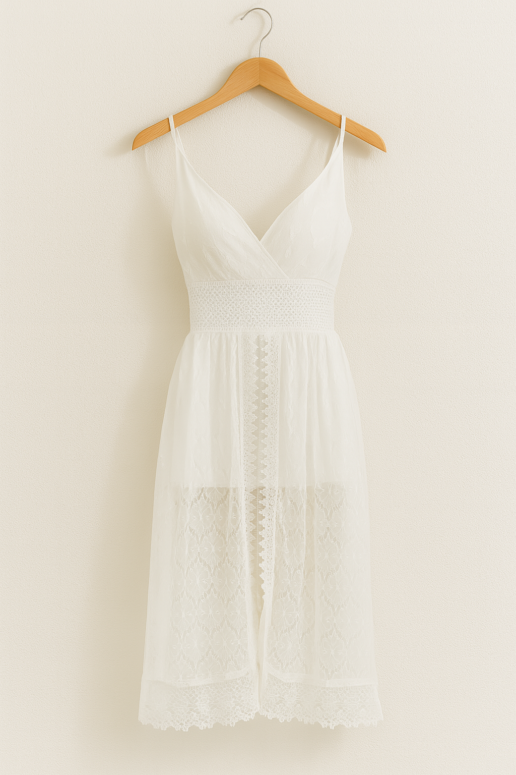 With its delicate lace fabric, integrated shorts, and open front, it's perfect for vacations, beach walks, and garden parties.